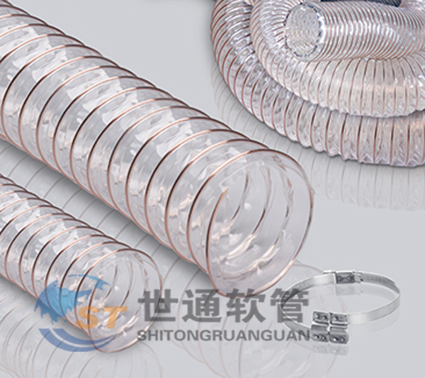 應(yīng)用: 小顆粒、碎料、磨損性粉末以及化學(xué)粉末等的吸料或送料。主要用于木工車間、陶瓷車間、水泥車間等粉塵比較大的生產(chǎn)環(huán)境的通風(fēng)吸塵。也可作為保護套管使用。根據(jù)歐盟EC食品接觸標準, 該軟管可用于干性食品的輸送。